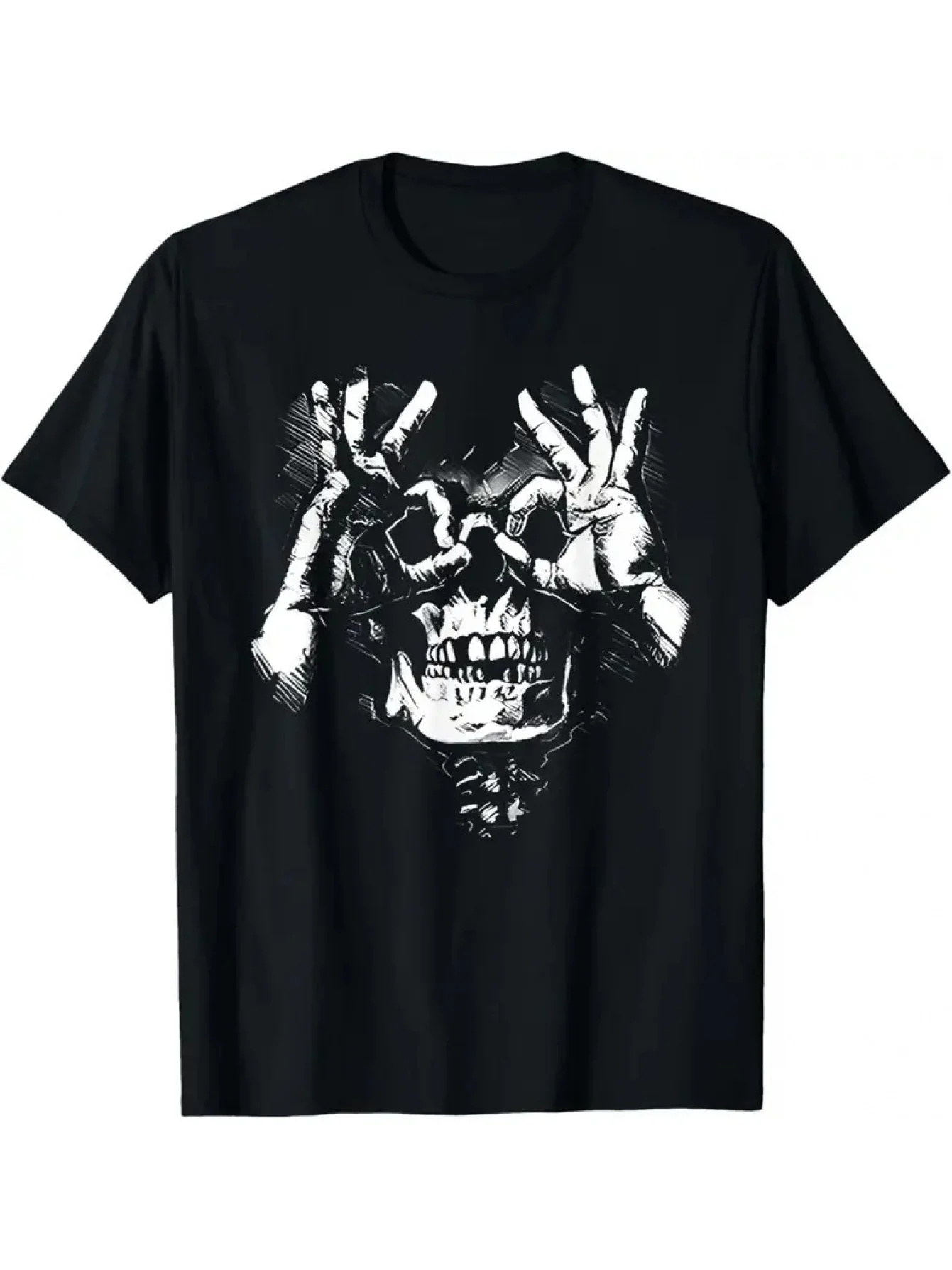 Cotton Casual Crew Neck Short Sleeve Regular Length Pullover Placket Graphic T Shirt with Skull OK Pattern for Adult