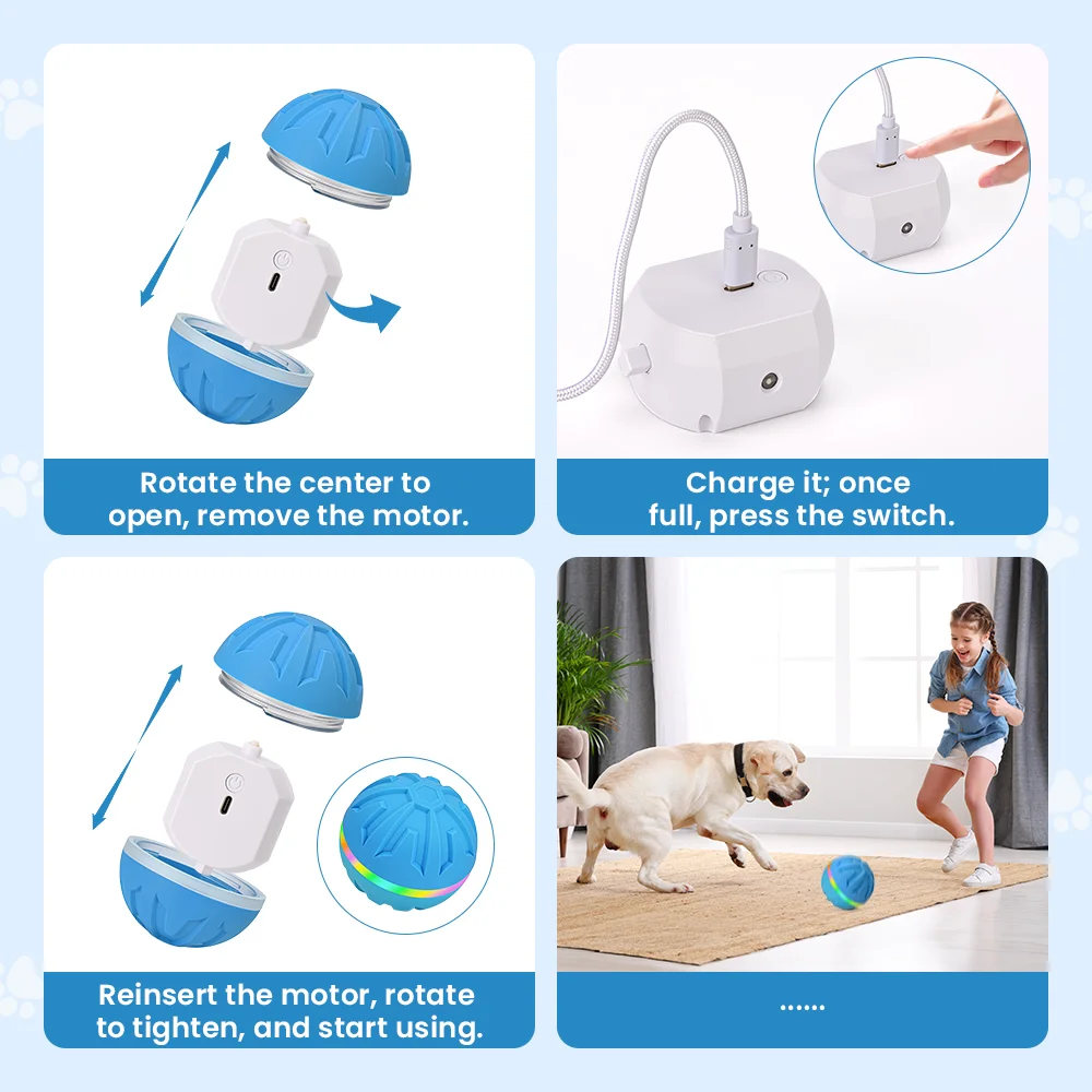 Designed for balanced play: 10 minutes active play → 30 minutes rest (activated by touch/remote) to keep your dog healthy. Just 1.5 hours of charging delivers up to 4 hours of fun! Note: Charge 1 hour after unboxing; use 5V adapter for safety.